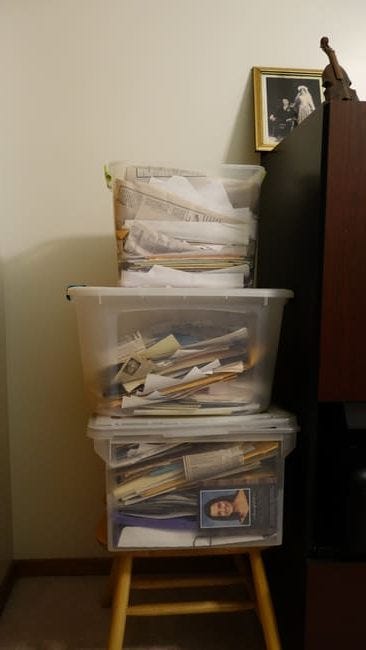 Thanksgiving weekend arrived soon enough, and this time, my grandpa rounded up two large tubs of stuff for me to go through. These tubs included newspaper clippings, documents, photos, cards, calendars, and other miscellaneous stuff they accumulated over the years. So, I sat myself down in their office and went through every last item in those tubs. It was quite simple to category the items by what made sense to include in the book, don’t include in the book, or revisit later; it just took some time.